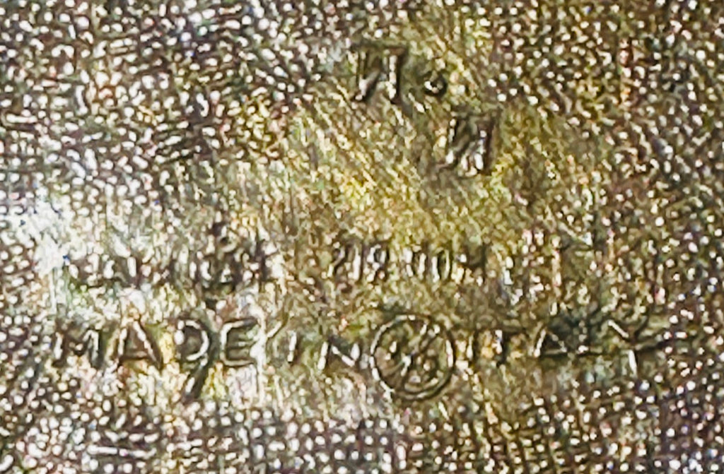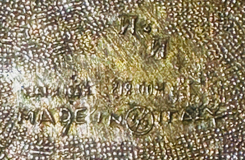 Stamped on the base “MM MOD. RIS. MADE IN ITALY,” this example reflects Manetti’s signature style and quality craftsmanship. During the 1960s and 1970s, Manetti became internationally known for his highly decorative and whimsical barware and tableware, producing eye-catching forms such as owls, ducks, pineapples, and acorns in both gold and silver finishes. His work embodies the exuberant spirit of post-war Italian design and remains highly collectible today.