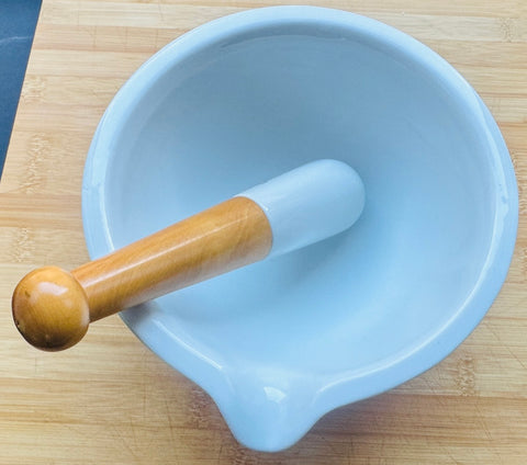 Dimensions: Diameter: 19cm Height: 10cm Pestle Length: 19cm Diameter: 4 1/2cm